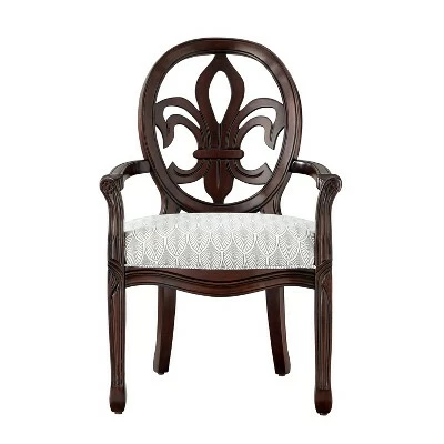 Inspired by Art Deco design detailing, the Bradford Accent Chair makes an artful addition to any seating ensemble. A plush gray and white seat is accented by fleur de lis carving, while gently curved detailing finish off the decorative frame. Pull this sophisticated accent up to your dinner table or simple place it by a bay window for a cozy spot to read.