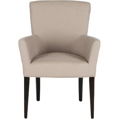 Dapper and delightful, the Dale Armchair brings a soft, tailored touch to any room with taupe linen upholstery and birch wood legs with espresso finish. Whether itโs an intimate dining room, a set for the study or a place for guests to have a cocktail in the living room, any room becomes an instant scene of modern luxury. Care Instructions: To prevent overall soiling, frequent vacuuming or light brushing is recommended. Cushions and pillows should be turned on a weekly basis. Down-filled cushions should be brushed rather than vacuumed. Spot clean, using a mild water-free solvent or dry cleaning product. Only a professional cleaner should undertake a complete overall cleaning. The use of steam or water-based cleaners may cause excessive shrinking or staining.