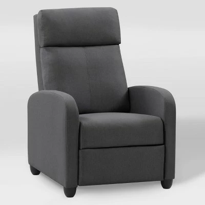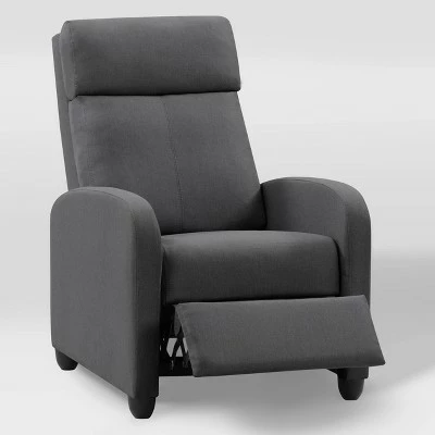 Cozy up in this recliner in your living room, den, or entertainment space. Designed with comfort in mind, this sturdy recliner is upholstered in an easy-to-maintain fabric with foam padded cushions designed for all-day comfort. Complete with a fully extending footrest, this recliner will have you relaxed in your favorite space in no time.