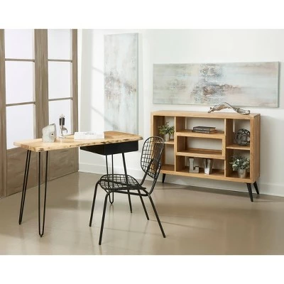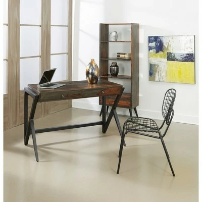 Who knew a metal chair could be so comfortable!! Our Accent Chair has a rich black powder coated finish, and a backrest and seat that is made with an open weave design, gently contoured to cradle your body as you sit. An ideal companion for our Sheesham and Iron Writing Desk, or anywhere that extra seating is needed.