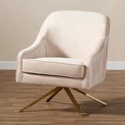 Looks good while relaxing with the sumptuous Amaya lounge chair. Every detail in the chair is indicative of its luxe and glamour-inspired design. The luxury look starts with the gold tone finished steel legs of the chair, tapered out towards the room and meeting together under the seat. The glam vibes of the Amaya continue with chic velvet upholstery over generous foam padding. The chair features a unique, sophisticated pleated pattern that starts at the chair’s arms, and wraps around the back. The Amaya’s cushion is removable for ease of cleaning. Add a touch of opulence to your livingroom, or even as extra seating in your entryway, with the Amaya. Made in China, the chair requires assembly. Dimensions: 35.83″ High x 28.35″ Wide x 33.46″ Deep; Seating Dimensions: 19.69″ High (from Floor) x 20.87″ Wide x 22.44″ Deep; Arm Height: 5.91″ High; Height (from Floor to Top of Arms): 25.59″ High; Back: 16.14″ High; Legs: 10.63″ High