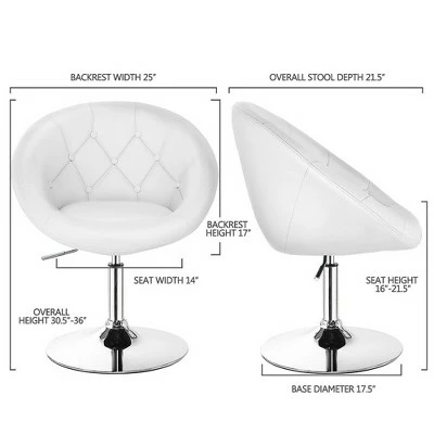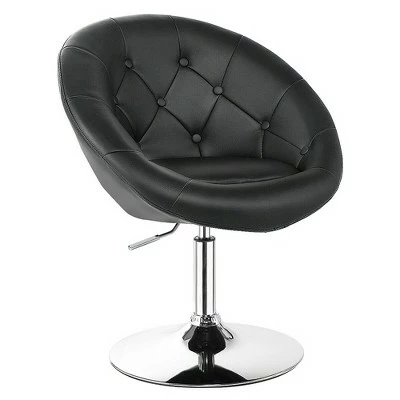 This Is Our 1PC Adjustable Swivel Round Tufted Back Accent Chair. Which Is Ideal For Your Work And Life. With A Modern Interiors Style, The Chair Is Great For Home Use Or Bar Use And Can Also Be Used In Your Shop. With Solid Chrome Construction And Distinctive Design, It Will Surely Be Your Best Choice. Don’t Hesitate To Buy It Now!. Specification: Color: Black. Seating Area Width: 14″. Height: Adjustable From 30.5″ To 36″. Overall Dimension: 25″ X 21.5″ X 36″ (Highest). Weight Capacity:330Lbs. Net Weight: 19 LBS. Package Include:. 1 X Chair.