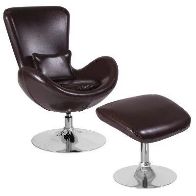 This high back reception chair will add an attractive detail to your lounge or office. This chair is highlighted with an outer lumbar pillow that provides lower back support and a swivel seat. Curved wing sides provide a stylish arm detail. The ottoman will keep you relaxed by kicking up your feet. The round chrome bases feature a plastic ring to protect flooring. Guests will be charmed at the contemporary seating with the added comfort. Please your guests with stylish seating that is made for comfort. Additional Features: Pillow Size: 12-13″W x 8-10″H x 2″ Thick, Seat Cushion, CA117 Fire Retardant Foam, Swivel Seat, Chrome Base, Base Diameter: 21.5″, LeatherSoft is leather and polyurethane for added Softness and Durability, Ottoman Size: 19.5″W x 15″D x 17.5″H