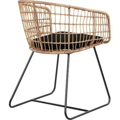 Wicker is a mainstay in casual furniture, and for good reason… and this lounge chair shows just how inviting it can be. This curved chair is constructed of light-colored poly rattan that contrasts beautifully with the black fabric and metal base. Designed for comfort as much as style, this chair’s removable cushion adds a perfect amount of padding, while the arms stand at a relaxing height. Try one of these chairs as a cool accent in your living room, or consider a pair to use at each head of your dining room table.