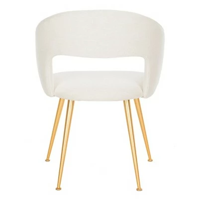The soft modern style of this contemporary linen blend armchair is an investment for the dining room or living room. Crafted with a gently curved back, its ethereal cut-out design features a luxurious soft pastel hue complemented by gold-finished capped legs. The cool mod design and metallic details of the Lorina Arm Chair makes it a perfect addition for contemporary, modern, or transitional rooms. It is available in two colors to best complement your personal style and decor.