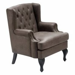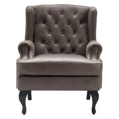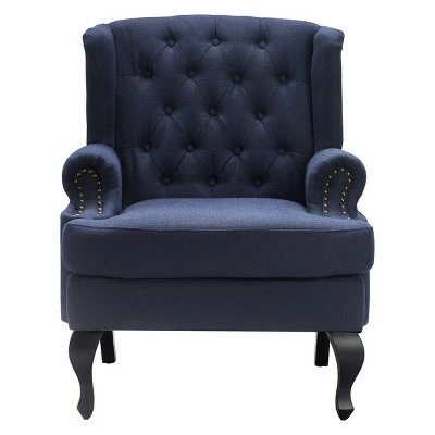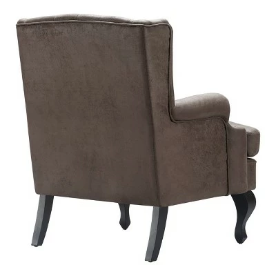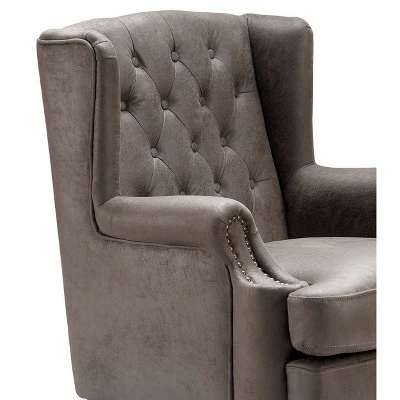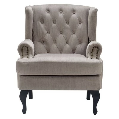 The Mason tufted armchair by comfort brand Serta is a spectacular piece that evokes comfort and style, making it perfect for placement in your traditional living room or den. This accent chair has comfortable deep seating and a classic tufted wingback armchair design that includes vintage brass nailhead accents on the front of the armrests and button tufting details on the seat back. Beautiful curved solid wood legs complete the look of this stylish wingback chair. This traditional chair arrives in one eco friendly box with easy to attach legs, allowing you to enjoy its comfort soon after it arrives at your door.