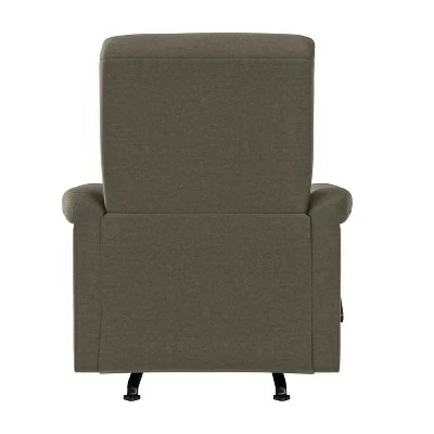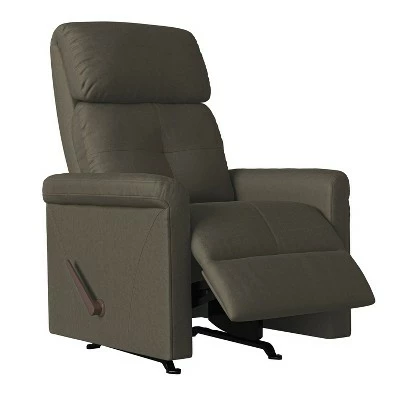 This ProLounger rocker recliner is covered in a gray nubuck fabric in a modern style that will update your home. This comfortable chair allows you the option to either recline back to relax or to rock away your stress while reading or watching tv. This chair provides padding in all the right places for ultimate comfort in your living rooms, bedrooms, theater rooms and media rooms. Full chaise pad between the chair and the leg rest to support the legs for a truly comfortable recline.