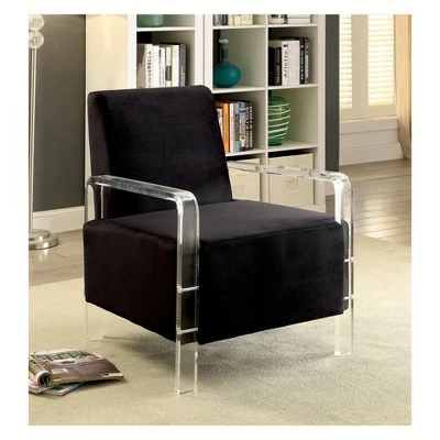 Make a bold statement with the Crider Contemporary Acrylic Frame Accent Chair from HOMES: Inside + Out. Brilliantly setting itself apart from the pack, this ultra stylish chair features luxe, velvety upholstery that appears to float mid air on a crystal-clear acrylic frame. Whether you simply need extra seating in your living area or are aiming to impress by adding a strong accent piece to a guest room, this is just the chair for the job.