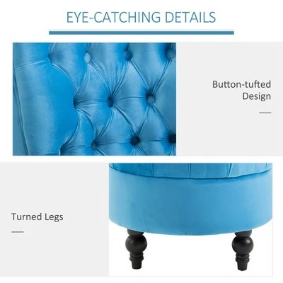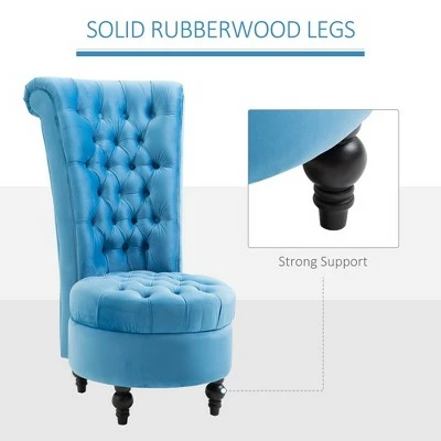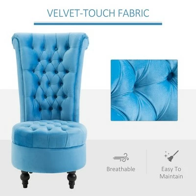 Bring style and character to your living space with this Royal High Back Tufted Chair from HomCom. Elaborating on the classic Chesterfield design, this high back chair creates an accent piece that is both off-kilter and elegant. Soft & thick padded cushions to give you hours of comfortable, stylish sitting, while colorful upholstery gives this chair a stunning, unique appearance that is sure to stand out in all the right ways. Create a unique space with this versatile chair that can become Gothic, Renaissance, or Upper Manhattan with the right additional decor choices. Have fun with your space with our quirky, fashionable accent chair.