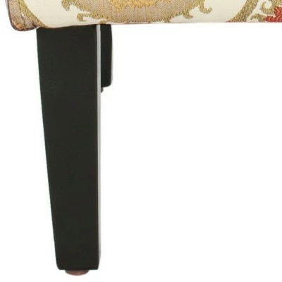 Our Marka Armless Club Chair features a clean and elegant design perfect for smaller spaces. A generously padded seat and back wrapped with earthy sunburst motifs in beige, brown, orange, and green cotton, sit atop sturdy birch wood legs in a dark brown finish. Care Instructions: To prevent overall soiling, frequent vacuuming or light brushing is recommended. Cushions and pillows should be turned on a weekly basis. Down filled cushions should be brushed rather than vacuumed. Spot clean, using a mild water free solvent or dry cleaning product. Only a professional cleaner should undertake a complete overall cleaning. The use of steam or water based cleaners may cause excessive shrinking or staining.