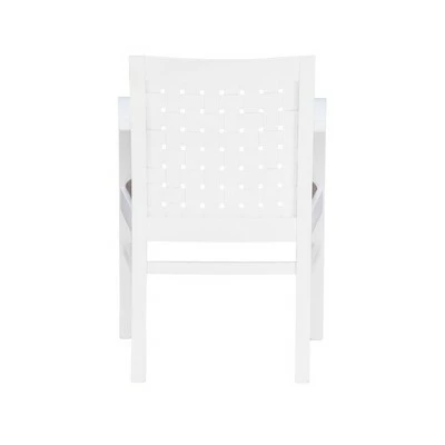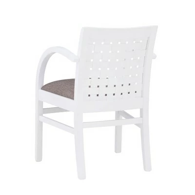 Reminiscent of classic woven strap armchairs, this accent chair adds a modern touch with beautifully curved arms and clean lines. It easily finds a home in a living room, bedroom, or the like. Crafted from solid beechwood finished in a bright white, the accent chair offers plenty of comfort. Its seat is upholstered in dark gray woven polyester, which is easy to clean, and blends with nearly any color scheme. Comes fully assembled.