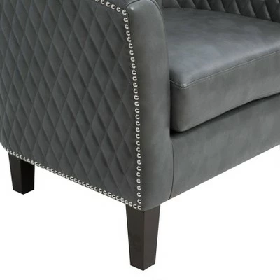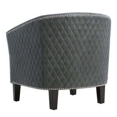 The luxe design of this suave club chair is rivaled only by its comfort, thanks to plush high-density foam padding in the seat and sides. Diamond-shaped texture wraps both the inside and outside of the chair, adding chic dimension at every angle. This unique, fashionable accent is balanced by a modern touch: polished nickel nailhead trim along the edges to add visual emphasis. Underneath the chair, sturdy block feet are finished in black for an added element of style.
