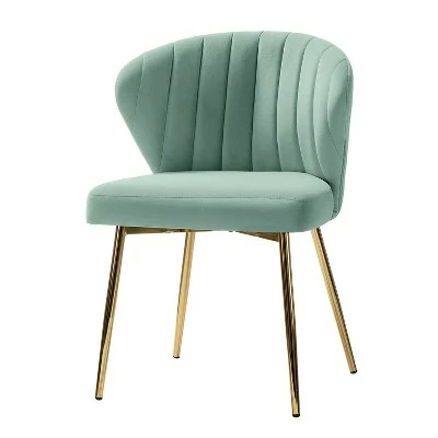 This classic and traditional style accent chair with pleated details is the perfect pick for small space. Whether drawn up to your dining table or rounding out your living room with an extra seat, a small side chair like this is a great option wherever you need it. Made with premium velvet fabric,comfortable for skin touch. High-density foam filling with a solid and manufactured wood frame provide comfort and support.The slender polished gold metal legs bring the modern design,and add to the timeless fashion of this piece.Overall: 20″Wx19.5″Dx30″H, Seat: 19″Wx16.5″Dx17.5″H