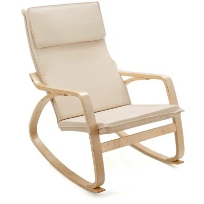 This stylish bentwood rocking chair can not only provide you a relaxing place, but also decorate your house better.. Covered by imitation linen fabric and constructed by steel and birch laminate, this single chair is comfortable, durable and stable. You will sit comfortably and feel relax with 2” cushioned seat and curved armrests. The specially designed arc base with perfect angle can effectively help you relax your body, thus you will have a super smooth and comfortable rocking experience. High quality wood frame ensures long-term service, so that the ergonomic bentwood rocking chair is strong enough to withstand the weight of 330 LBS. . Specification: Color: Gray Beige. Material: Birch Laminate + Sponge . Overall Dimension: 26” x 33” x 36” (L x D x H) . Net Weight: 16.5 lbs . Weight capacity: 330 lbs . Package includes: . 1 x Bentwood Rocking Chair. 1 x Instruction.
