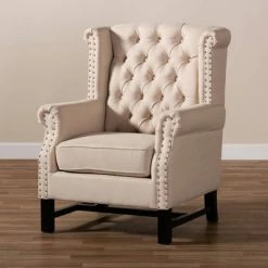 Lounge in style and comfort with the Emeline chaise. This Victorian-inspired chaise features a graceful scroll back and single arm that display lavish button tufting. Designed to add both elegance and function to your space, the Emeline is crafted from sturdy wood and upholstered in a soft, foam filled fabric for the utmost relaxation. The chaise is set on top of tapered, oak finished legs, adding a modern twist to this classic chaise. The Emeline chaise is made in Malaysia and requires assembly.