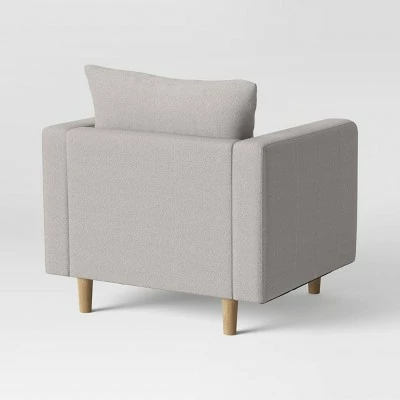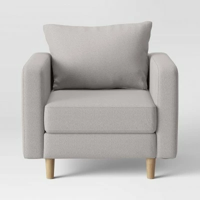 Accent your home with the comfy and modern style of this Jacobs Large-Scale Mid-Century Modern Armchair from Project 62β’. Set on natural wood leg supports, this solid-color armchair is perfect to add some mid-century charm to any space in your home. Designed with cushioned seat and back, this upholstered armchair helps you stay comfy whether you’re reading a newspaper with a cup of tea or just lazing around after a long day.
