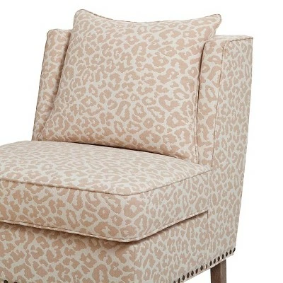 Give your room a fresh vibe with the Conner Beige Armless Shelter Chair. Redefined with a modern feel, this accent chair brings a casual, yet sophisticated, look to your room with its subtle leopard print pattern and nailhead trim. It features thick padding for a soft spot to sit. Place a pair around your sofa to add extra seating or use as an accent piece in your entryway.