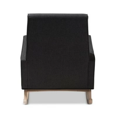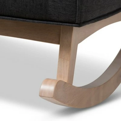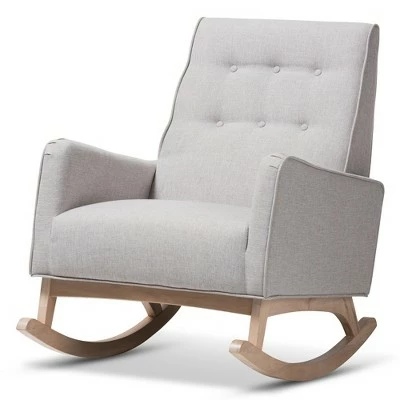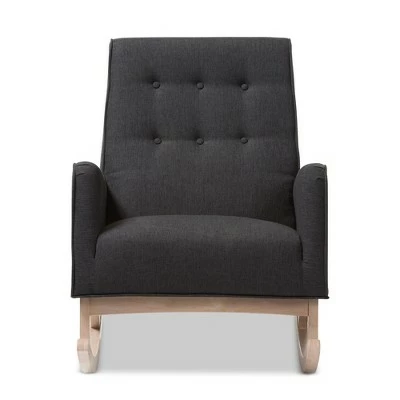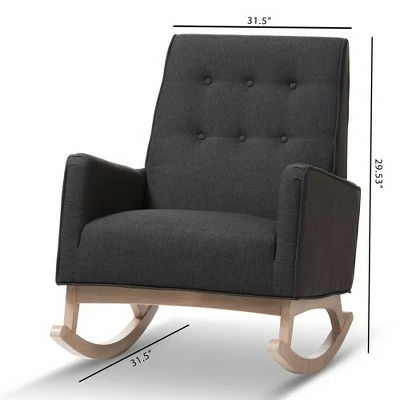 Sophisticated style and smooth, calming lines come together in the Marlena rocchair. This mid-century modern-inspired rocchair features fabric upholstery with button-tufting details and a subtle piping design. The low-profile Marlena rests on solid, whitewashed rubberwood legs. This rocchair is foam padded, with the arms at an ergonomically designed height to make it easy to get cozy and stay relaxed. The Marlena is a stylish and comfortable addition to your nursery, livingroom, or any shared space. Made in Malaysia, this rocchair requires assembly. Dimensions: 36.61″ High x 27.56″ Wide x 38.98″ Deep; Seating Dimensions: 20.47″ High (from Floor) x 21.65″ Wide x 19.29″ Deep; Arm Height: 5.71″ High; Height (from Floor to Top of Arms): 25.39″ High; Back: 7.09″ High; Legs: 10.63″ High
