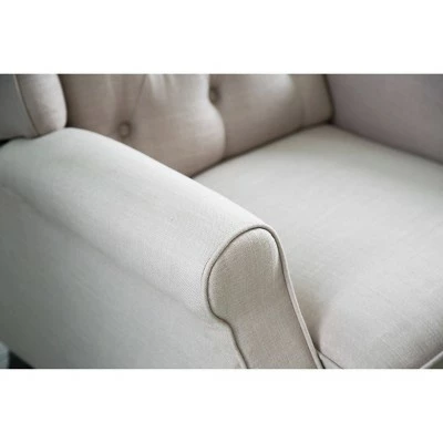 The Scarlett Fabric Pushback Recliner by Abbyson comes in a neutral, light gray color that will fit your décor style. The linen-textured polyester upholestry is durable and features hand-stitched detailing and buttoned tufts. The legs of this recliner also have great detail and add a unique touch to this smooth, pushback recliner.