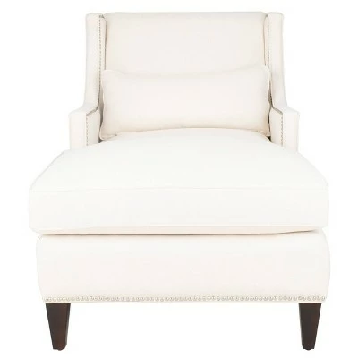 Thoroughly contemporary, the Vitali Studded Chaise has a family tree that can be traced as far back as the Victorian fainting couch. Wonderful in a bedroom, and equally pretty in the living room, this striking chaise has sloping arms, brass nail head trim and birch wood legs; a lounging oasis for modern day romantics. This striking piece of home furniture is able to support up to three hundred pounds. The Vitali Chaise is the perfect addition for Contemporary, Modern, or Transitional style interiors.