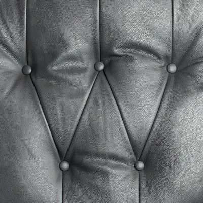 - Gray genuine leather upholstery on seats, arms, and inside back. Faux leather is on back and sides.