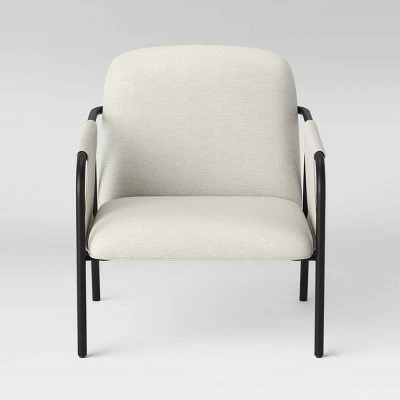 Add both comfort and elegance to your home with this Faison Linen and Metal Sling Accent Chair from Thresholdβ’. Its occasional style and upholstered seating are perfect for adding a laid-back aesthetic to your living space. Its cream color matches all furniture and decor color palettes, and the Faison linen fabric is embellished with a beautiful tattersall checkered texture.