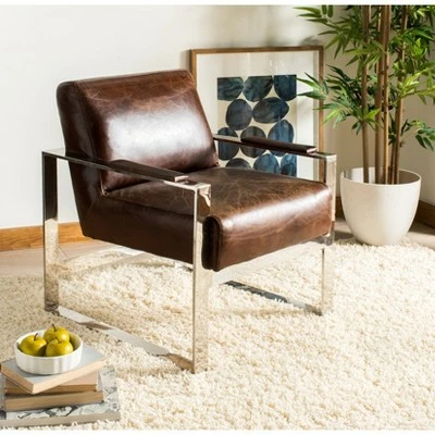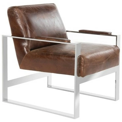 The understated but classical mid-century modern Parkgate occasional chair is richly upholstered in top grade leather in vintage cigar brown. Its polished stainless steel frame is open and airy but still enduring with its upholstered armrests, inviting you to ease comfortably into the chair. with a solid sleek frame and more than plush leather cushions, Parkgate a choice worthy of the executive head of the household. Its modern style is great for the living room, office, or even bedroom.