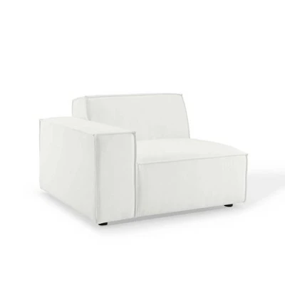 Create your custom living room and lounge area with the Restore Upholstered Fabric Left-Arm Sectional Sofa Chair. The Restore Left-Arm Chair appeals to minimalist elegance with a crisp design and broad lines accented with French piping details and polyester fabric upholstery. Dense foam padding and a pocket coil spring system in the cushions offer a luxe seating experience for your living room and lounge. The Restore Living Room Sofa Chair is solidly constructed from plywood and wood with non-marking foot caps to protect flooring and connectors between modular pieces. Chair Weight Capacity: 440 lbs.