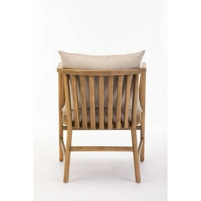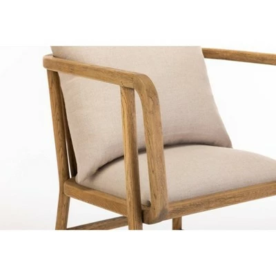 The Burnham Home Designs Alexandra Arm Chair would be a beautiful addition to your living room. This chair is made with a brushed oak frame and a natural linen seat and backrest. It includes a removable pillow backrest for style and comfortability. The high arm rests to make for comfortable lounging while enjoying the TV or talking with guests.