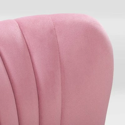 Looking to add an accent chair to your living room or bedroom? Upholstered in a soft and rich velvet this armless chair brings a modern feel to any space. The Channel tufting paired with the flared back adds to the chic style of this versatile chair. Finishing the look with four solid wood tapered, legs that add stability to this multifunctional piece.