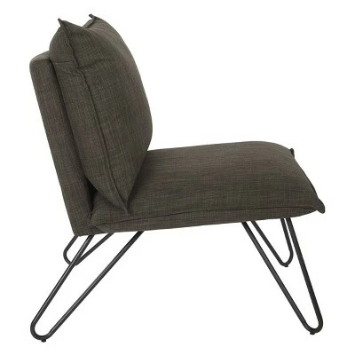 Padded beauty and sophistication in one package. The Riverdale Chair exceeds in contemporary grace with a flashy presentation. Metal hairpin legs keep this pillow seat afloat with impressive strength. Fall back into the snug padded back and experience a heavenly embrace of comfort. This chair will immerse you into a restful wonderland the likes no other chair is capable of.
