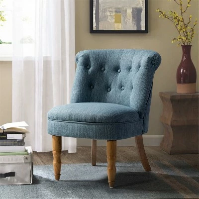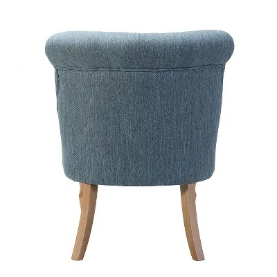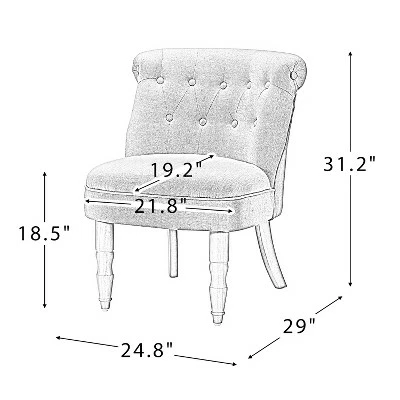 Drawing on the elegance and attitude of classic design, this high-quality side chair has a simplified profile with soft curves and exquisite stitching. Natural hued solid wooden legs are carved painstakingly for a glamorous appeal and offer admirable support also. With comfortable foam-filled and textured fabric wrapped, it not only serves as an item of practical furniture but also an eye-catching decoration piece to complete your seating arrangement. Make a statement of modern yet classic aesthetics, button tufting details and subtly rolled top of the back are the best proof, showcasing your unusual charm of personality. Designed for long time use and convinced by the sturdy solid and manufactured wooden frame, it fits well in the living room, bedroom, office and other scenes thanks to the gentle outlook. All you need to do is bring it home and enjoy it fullest.Item Size:24.8″Wx29″Dx31.2″HSeat size:21.8″Wx19.2″Dx18.5″H