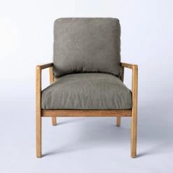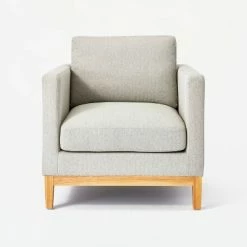 Update your indoor seating space with this eye-catching Vernon Upholstered Barrel Accent Chair from Threshold™ designed with Studio McGee. Dressed in chic upholstery, this accent chair has a barrel backrest that curves into high armrests, along with a wide foam cushioned seat to provide you a comfortable seating experience. This upholstered accent chair comes in a solid hue that blends seamlessly with the existing decor in your home. Place it under a floor lamp in your living room, and add a small end table to create a charming and cozy reading corner in your home.