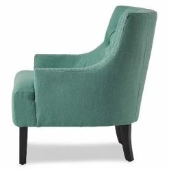 - Upholstered barrel accent chair brings chic style to your space